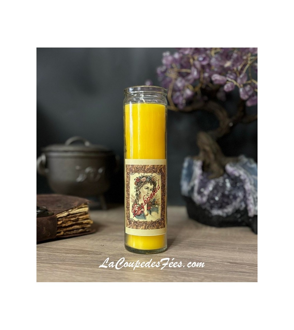 Bougie en verre de 20 cm X 6 cm avec instructions en français.