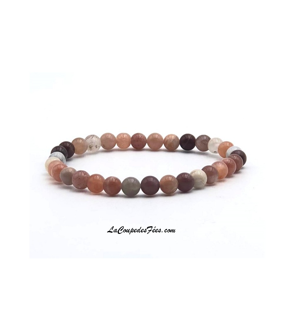 Bracelet monté sur élastique de 17 cm avec des perles naturelles de 6 mm en pierre de lune.