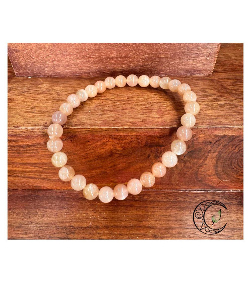 Bracelet monté sur élastique de 17 cm avec des perles naturelles de 6 mm en pierre de lune qualité Extra.