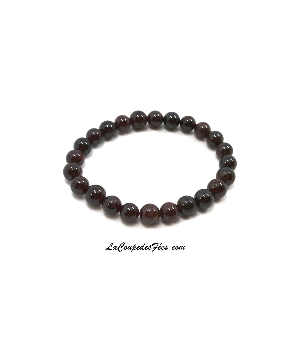 Bracelet composé de perles naturelles de 8 mm en grenat almandin montées sur élastique de 18 cm.