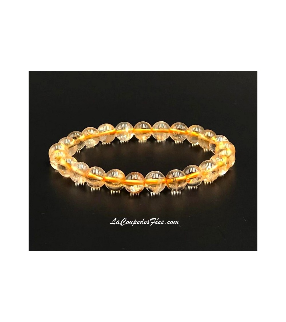 Bracelet monté sur élastique de 17 cm avec des perles naturelles en citrine qualité A de 8 mm.