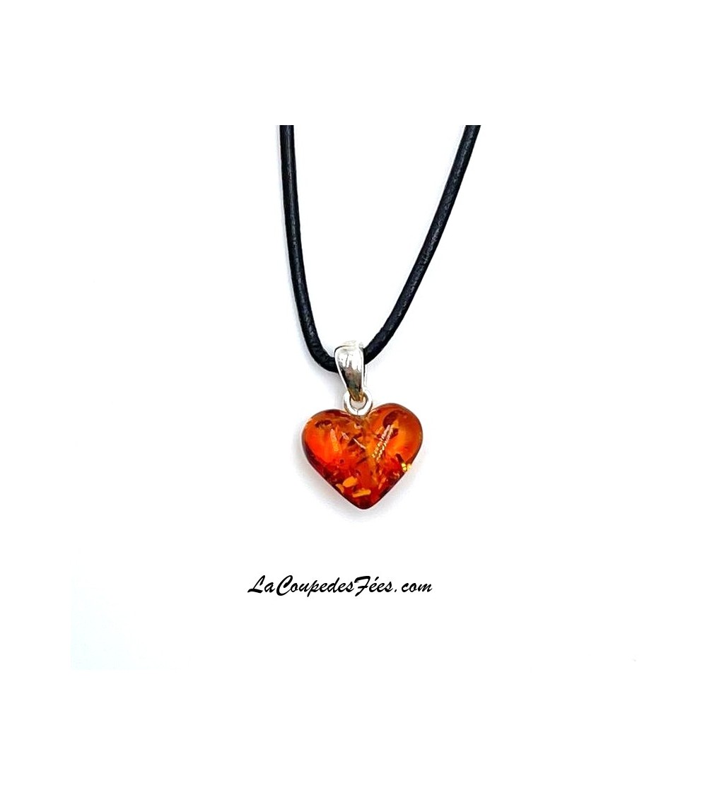 Petit pendentif coeur en ambre véritable de +/- 1 X 1 cm en provenance de Lituanie (bélière en métal argenté livré avec son cordon vendu à l'unité).