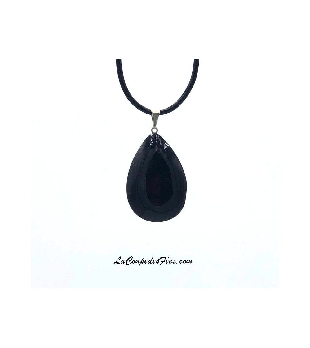 Pendentif larme en obsidienne noire naturelle de 3 à 4 cm.